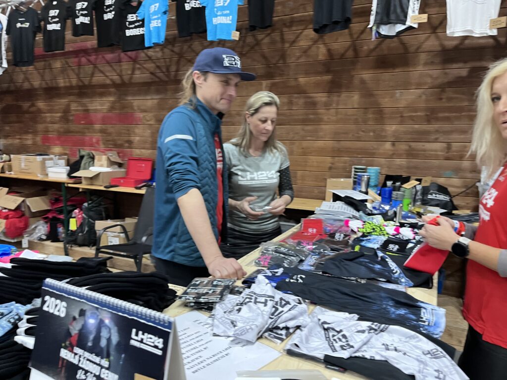 Akreditační hala v prostorách zrekonstruované bývalé pily přivítala už minimálně tři stovky závodníků. Kromě samotného procesu akreditace je v hale také stánek BrainMarket, kde si mohou účastníci doplnit potřebné výživové doplňky, a nechybí ani náš tradiční stánek s merchem LH24 a B7.